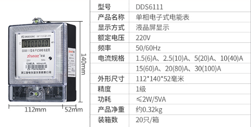 DDS6111型單相電子式電能表,由于采用集成電路和SMT制造工藝,使之測量準確度,穩(wěn)定性等均得到了可靠保證.適用計量額定頻率為50Hz,額定電壓為220V的單相交流有功電能.