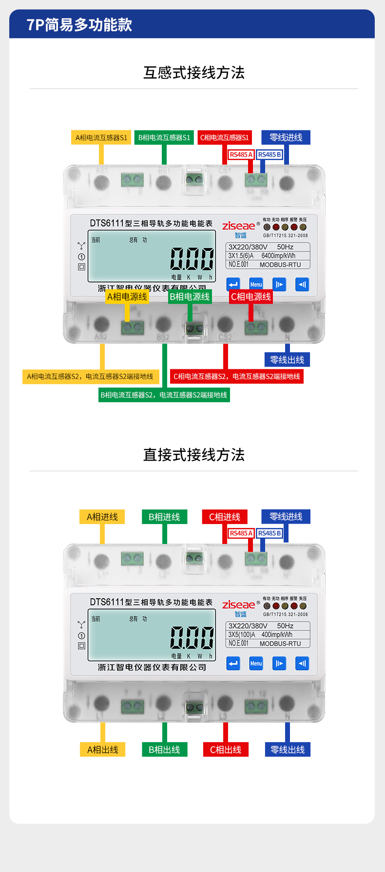 DTS6111、DSS6111型三相導(dǎo)軌式簡(jiǎn)易多功能電能表(7P)