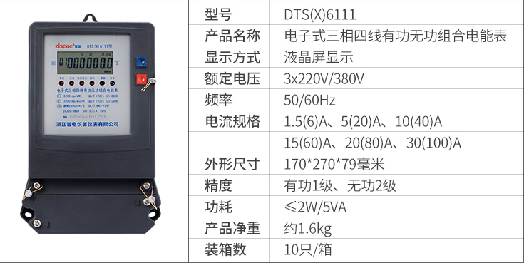 DTS(X)6111、DSS(X)6111型三相電子式有功無功組合電能表(以下簡稱電能表),是為了適應(yīng)電網(wǎng)改造設(shè)計(jì)開發(fā)的有功、無功組合式電能表。它具有較高的準(zhǔn)確度和可行性。產(chǎn)品制造標(biāo)準(zhǔn)符合GB/T17215.321-2008《1級(jí)和2級(jí)靜止式交流有功電能表》、GB/T17215.323-2008、DL/T614-1997《多功能電能表》、DL/T645-1997《多功能電能表通信規(guī)約》等電力行業(yè)標(biāo)準(zhǔn)對(duì)三相靜止式電能表全部技術(shù)要求,是對(duì)需要進(jìn)行無功電量考核的企業(yè)、變電站或電廠理想的選擇,亦適合輸配電或配網(wǎng)自動(dòng)化用表。本產(chǎn)品可供計(jì)量參比頻率為50Hz電網(wǎng)中的三相交流有功和無功電能,并能進(jìn)行正、反向電能計(jì)量和紅外及RS485通訊功能。其特點(diǎn)是精度高、可靠性好、寬負(fù)荷、低功耗、誤差曲線平直、抗干擾能力強(qiáng)。
