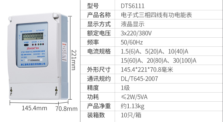 DTS6111三相四線、DSS6111三相三線型三相電子式電能表是采用集成電路,16位A/D轉換、數(shù)字乘法器、應用數(shù)字采樣處理技術及SMT工藝,根據(jù)工業(yè)用戶實際用電狀況所設計、制造的儀表。該表采用獨立三單元計量模塊能測量三相正向和反向的有功電能。計量誤差具有穩(wěn)定性。
