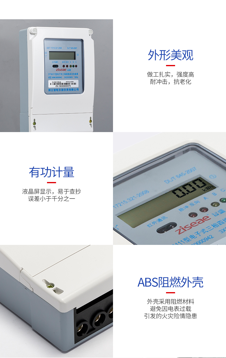 DTS6111型三相四線和DSS6111型三相三線兩種型號(hào)三相電子式有功電能表,內(nèi)部運(yùn)用了集成電路在經(jīng)過(guò)SMT工藝生產(chǎn)制作而成。結(jié)構(gòu)設(shè)計(jì)合理,制作工藝先進(jìn),跟傳統(tǒng)的電能計(jì)量表對(duì)比,三相電子式有功電能表的測(cè)量準(zhǔn)確度高、性能可靠、節(jié)能。