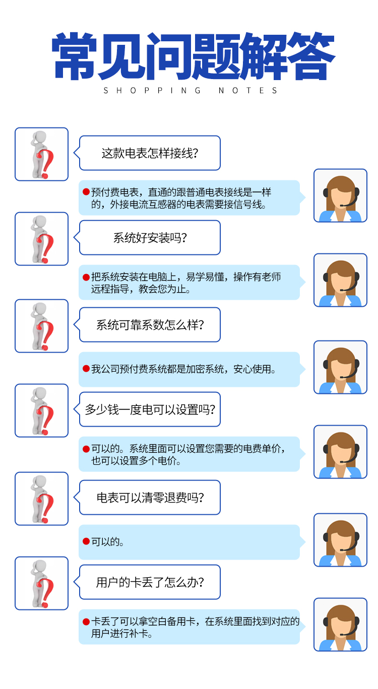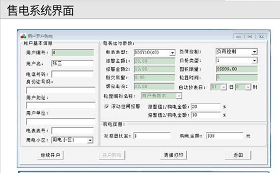 7、購電方式:售電時(shí),將IC卡插入IC卡讀寫器,同時(shí)操作計(jì)算機(jī),將用戶編號(hào)、預(yù)購電量、報(bào)警電量、限容方式及限容功率等加密寫入IC卡。