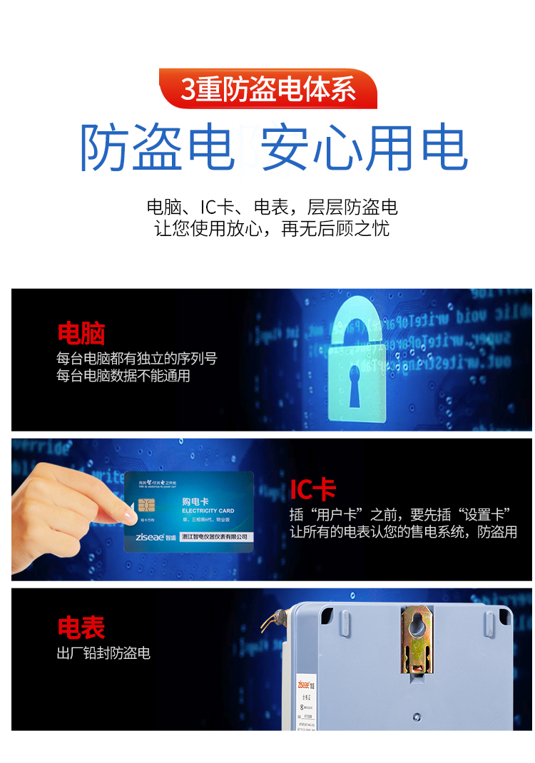 主要特點(diǎn):應(yīng)用計(jì)算機(jī)管理,先購電后用電;在額定電流范圍內(nèi)能限制使用功率(由供電部門限定);一表一卡,??▽S?,失卡不失電,補(bǔ)卡再用;電卡能雙向傳遞數(shù)據(jù),能自動(dòng)斷電告警用戶購電;電量為零時(shí),自動(dòng)拉閘斷電;并具有一定的防竊電軟件設(shè)計(jì)等。