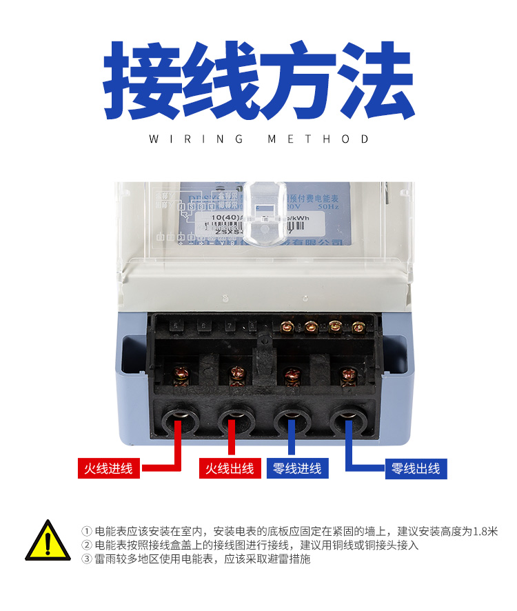 1、單相預(yù)付費(fèi)電表在出廠時(shí)經(jīng)檢驗(yàn)合格,并加封鉛印,可安裝使用,如無鉛封或貯存過久,應(yīng)請(qǐng)有關(guān)部門重新校驗(yàn)加封,方可安裝使用。